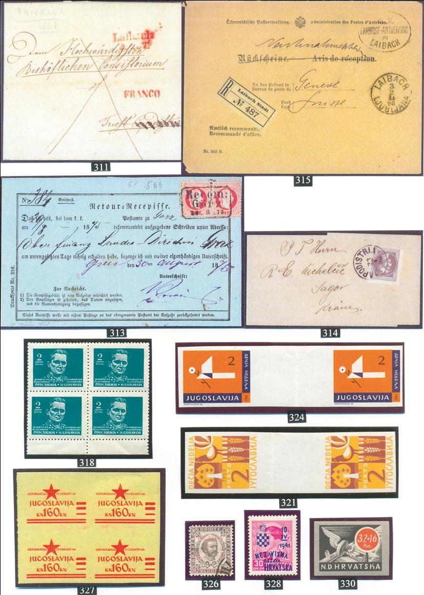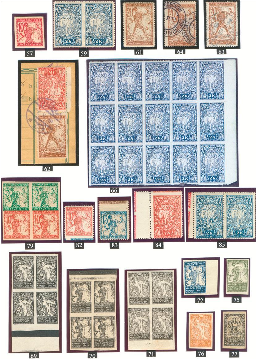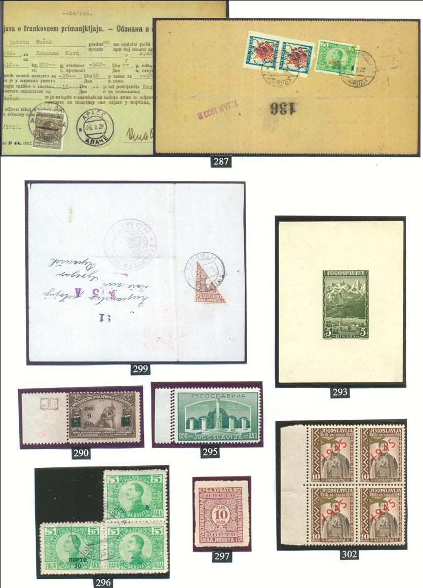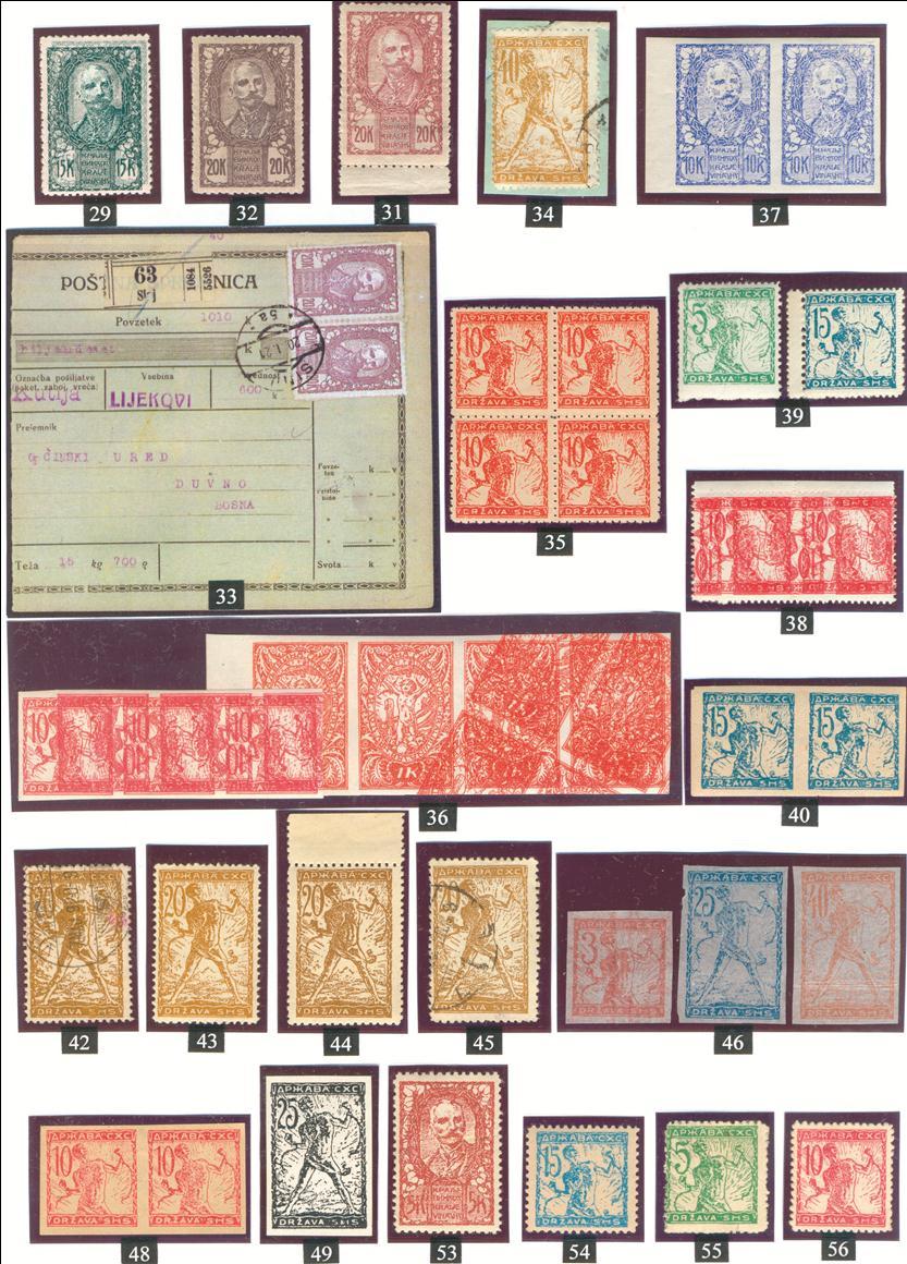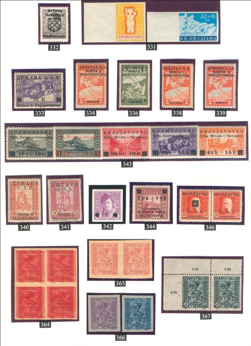 Sledijo filatelistična področja bivše Jugoslavije, še posebaj zastopani sta SHS Bosna in SHS Hrvaška.